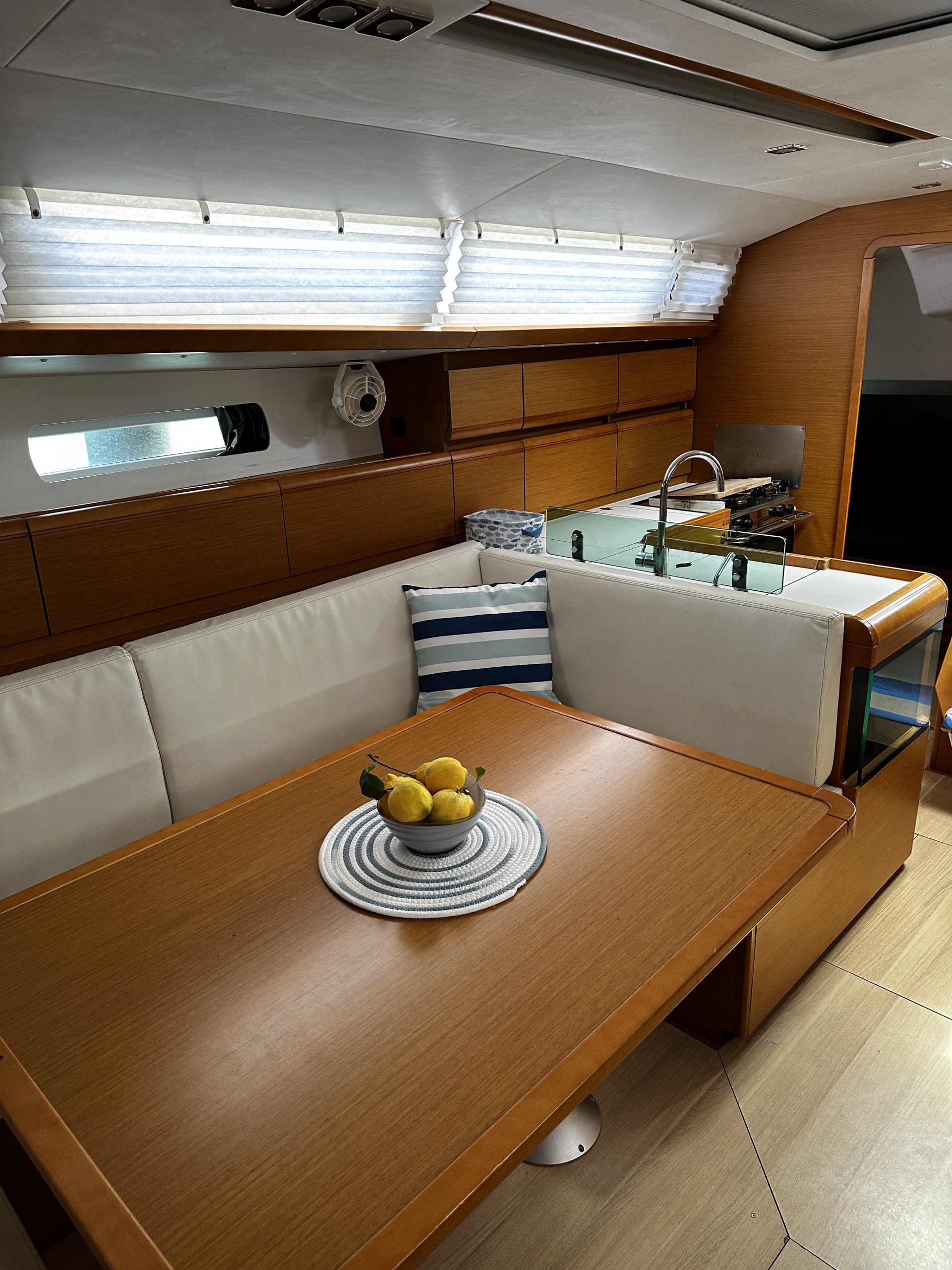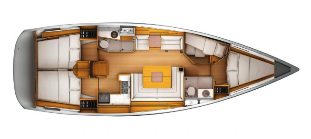 • 4 double cabins ( 3 cabins with double beds and a cabin with two individual bunk beds) and a 2 places convertible lounge (double bed)